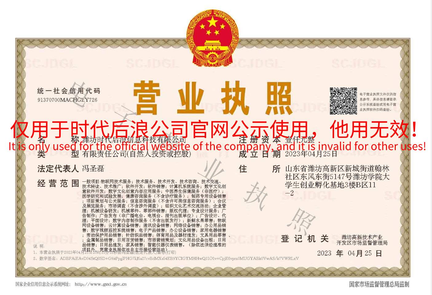 潍坊时代后浪信息科技有限公司成立于2023年,是一家专注于互联网信息技术研发与创新的科技型企业。公司总部位于潍坊学院大学生创业孵化基地,拥有一支由资深技术专家和行业精英组成的团队。